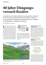Ein Rückblick auf eine 40 Jahre währende Versuchsgeschichte: In Rosière in der Gemeinde Orsières (Kanton Wallis) wird seit 1984 auf 1190 Metern das Zusammenspiel von Düngung und Schnittfrequenz bei der Produktion von Qualitätsfutter im Langzeitversuch analysiert.