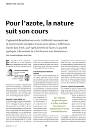 S’agissant de la fertilisation azotée, la difficulté à surmonter est de synchroniser l’absorption d’azote par la plante et la libération d’azote dans le sol. A cet égard, la forme de l’azote, la quantité
