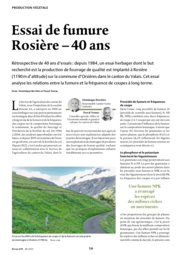 Rétrospective de 40 ans d’essais : depuis 1984, un essai herbager dont le but recherché est la production de fourrage de qualité est implanté à Rosière (1190 m d’altitude) sur la commune d’Orsières dans le canton du Valais. Cet essai analyse les relations entre la fumure et la fréquence de coupes à long terme.
